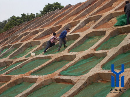施工前準(zhǔn)備,如工具、人員配備、覆蓋充填物、草種等;對(duì)邊坡進(jìn)行修整,使之盡可能的平整; 在坡頂開(kāi)挖暗溝,尺寸為寬1米,深1米; 貼著地面由上至下將三維網(wǎng)卷材展開(kāi),卷材頂端固定于暗溝內(nèi),相鄰兩卷材料相互搭接,并要求搭接寬度不小于10厘米,并用軟鐵制成的U型地釘進(jìn)行固定,鋪設(shè)時(shí)網(wǎng)狀面朝上,多余卷材用剪刀裁剪;田野風(fēng)介紹播灑草種,可選用百慕大草或百喜草,草種用量為12克/平方米;人工回填細(xì)砂質(zhì)營(yíng)養(yǎng)土,厚度不***過(guò)三維網(wǎng)的一半高度,再灑草種,回填土至剛好填滿(mǎn),然后輕微壓實(shí)、整平; 如氣候較干燥,水分散失較快,可采用草袋或無(wú)紡布覆蓋,澆水養(yǎng)護(hù); 在植被發(fā)育期間,每天澆水兩次,養(yǎng)護(hù)期約十天; 當(dāng)植被生長(zhǎng)成型,根系已穿過(guò)三維網(wǎng),即可撤去上覆的草袋或無(wú)紡布。 維植被網(wǎng)護(hù)坡滿(mǎn)足了路基邊坡坡面的保護(hù)和加固的要求,保證了路基不致因雨水沖刷和氣候變化而破壞,而且兼顧了道路景觀和環(huán)境協(xié)調(diào)。已引起了大家的關(guān)注,在實(shí)際工程中已大量采用,具有廣闊的發(fā)展前景。